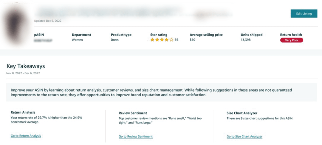 这些数据可以让卖家明确店铺中每个商品的优化方向,降低未来买家的退货可能性。