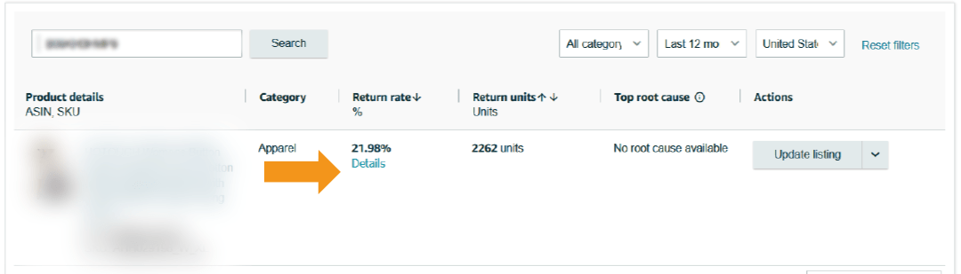 下图展示的是商品级别的退货信息,该商品的退货率达21.98%。此外,点击detail可以发现: