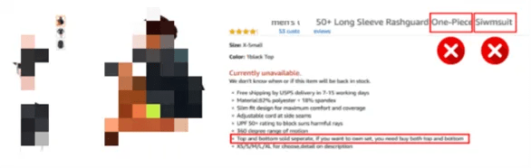 同样,标题与描述出现相冲突的商品描述,引起消费者误解,也会导致他们放弃购买或退货。