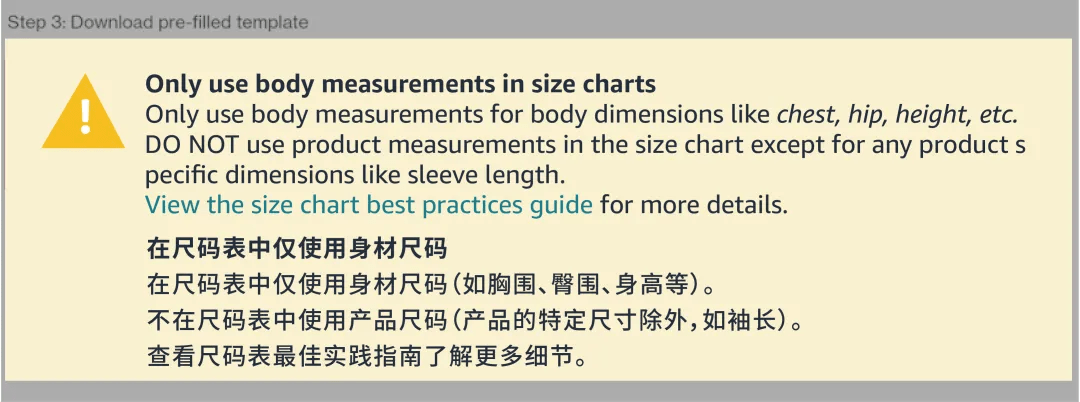 卖家可以将尺码表应用于单个或多个ASIN,也可以将尺码图应用于连衣裙、裤子等产品类型中的所有ASIN。建议为您拥有且销售的每个站点/品牌/类目/产品类型,都上传一个尺码表。