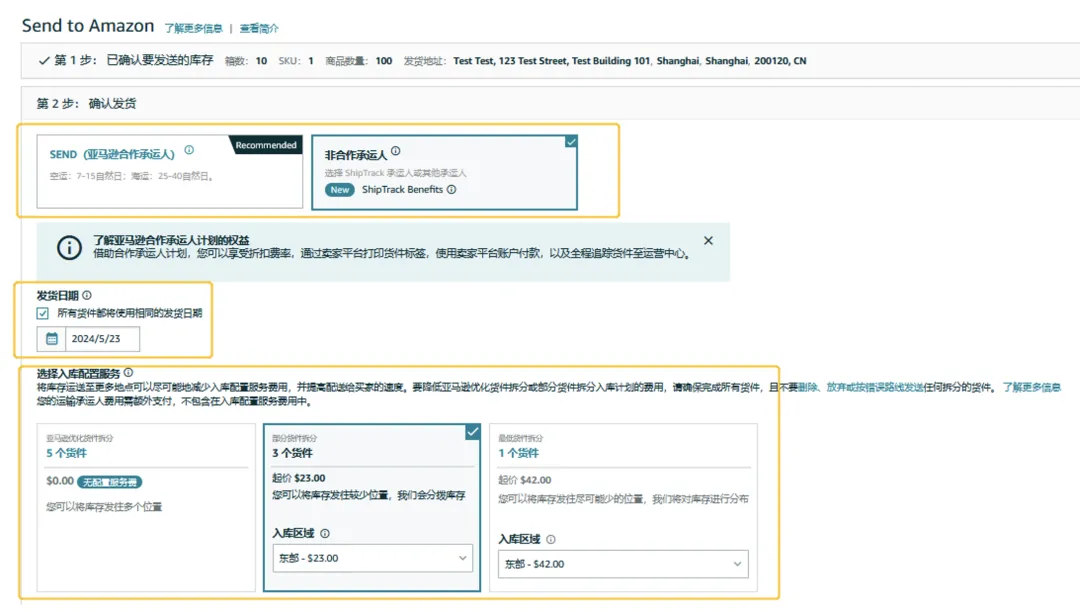 选择Amazon SEND(亚马逊跨境承运伙伴)或非合作承运人(比如ShipTrack承运人或其他承运人)。