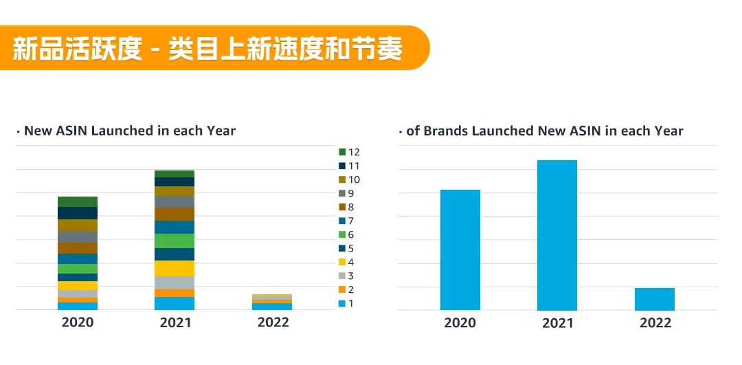 根据过去历年创建新ASIN的数量,分析该类目上新活跃度,判断该子类的潜力。