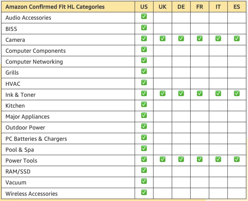 Amazon Confirmed Fit(也称为Part Finder或Stripe V2)是详情页面上的前端小部件,它允许用户查看某个特定的基础产品(通过品牌、系列、型号识别)是否适配详情页面上展示的配件产品,满足买家精准找到主产品替换配件的需求,从而更精准地匹配买卖双方需求,帮助卖家提供更便捷的购物体验,助力提升业务效率。