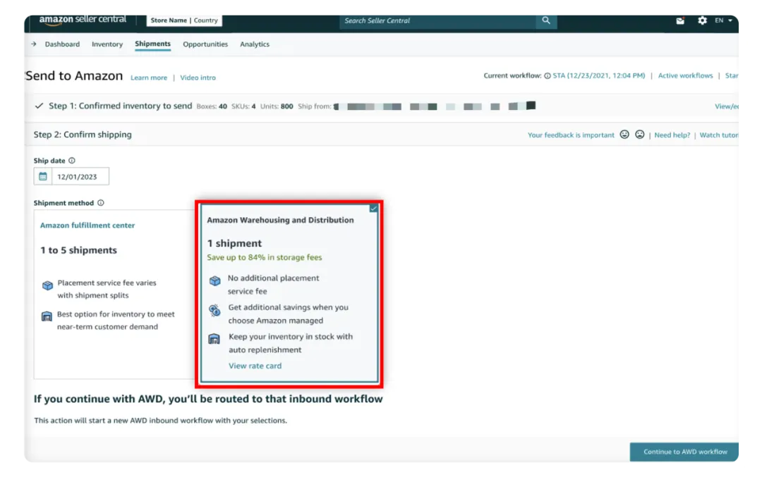 当您选择发货至AWD时,您无需分仓,亚马逊将代替卖家: