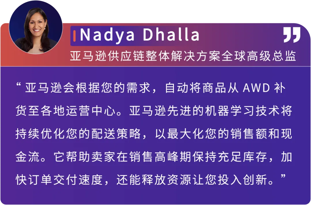 亚马逊供应链智能托管服务的核心,在于亚马逊仓储分销网络AWD基于大数据的千人千面定制化自动补货功能。