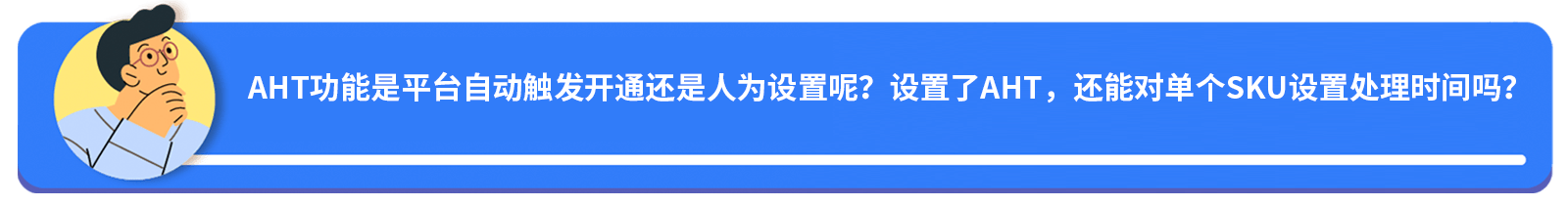 如果您设置的承诺备货时间比实际备货时间慢2个工作日或更长时间,亚马逊将为您启用自动备货时间(Automated handling time,简称AHT)功能,自动备货时间 (AHT) 将为在Amazon.com销售并从美国境外仓库发货的SKU设置更加准确的备货时间,即根据您过去处理订单并交给承运商的历史时间,为每个SKU设置一个备货时间。如果某SKU没有发货历史记录,将使用您手动设置的备货时间。