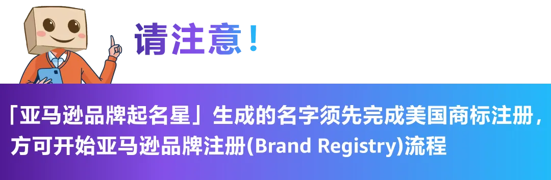 🔍 您可复制链接至浏览器,体验「亚马逊品牌起名星」👉https://sellercentral.amazon.com/brand-name-generator