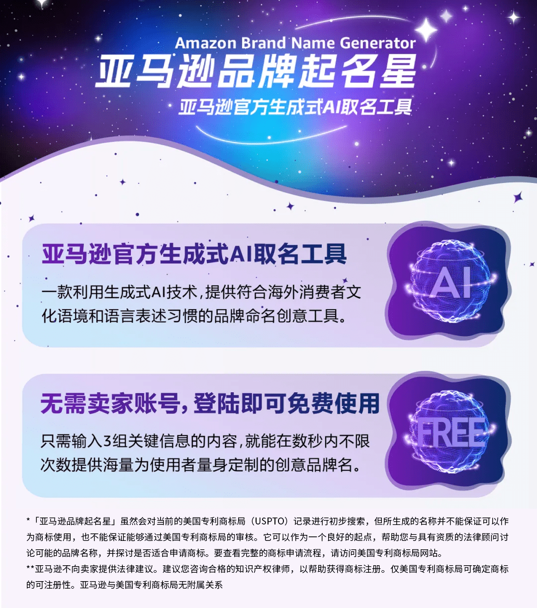 用AI帮你取一个地道的海外品牌名,「亚马逊品牌起名星」对所有人开放使用啦!