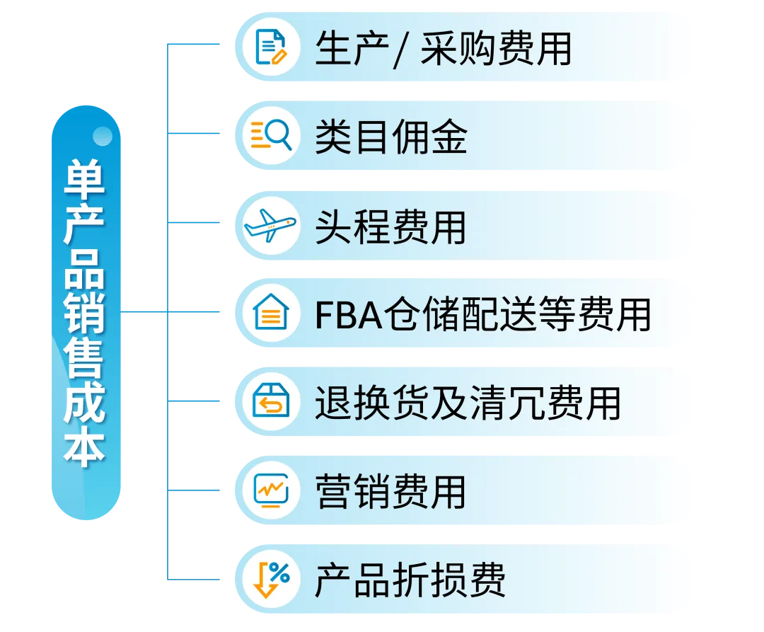 *以上成本指的是每一款产品(单个SKU)的成本,不计算公司层面的房租、人员、水电燃气等费用。此外还可能产生一些额外费用,如加入亚马逊付费客户经理服务项目的费用、选择第三方服务提供商的费用等。