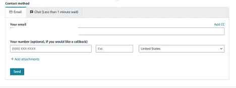 ➤ “Email”方式:留下您的邮箱(必填)和手机号码(建议您填写,这样“卖家支持”团队在需要您补充资料时,可通过电话联系您)