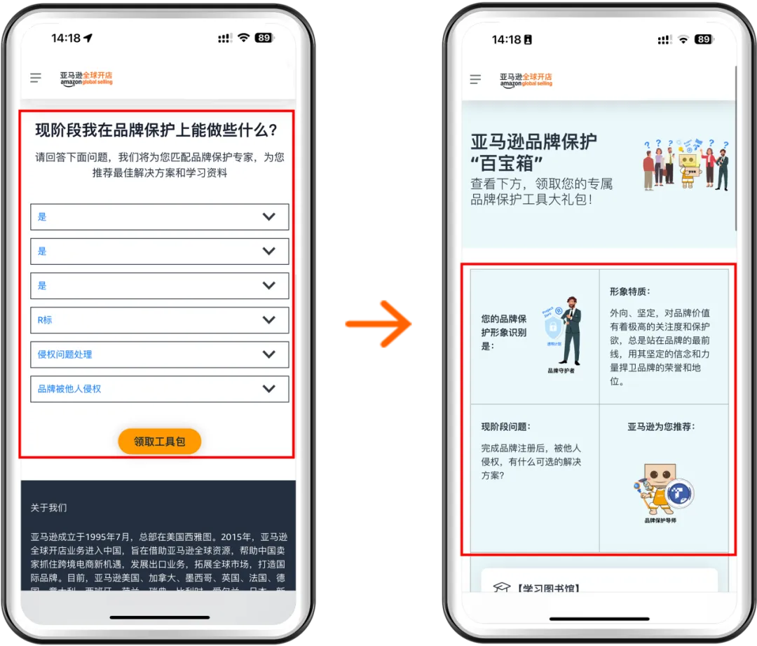 为此,亚马逊重磅推出『品牌保护百宝箱』!只需回答几个简单问题,系统就能智能推荐品牌保护方案,并为您量身定制保护方案!