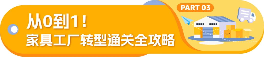 亚马逊全球开店深知各位工厂老板转型跨境过程中面临的机遇和挑战,专门为各位总结出适配家具类目从产品开发、财务规划、团队搭建、物流备货、合规要求到运营实操及品牌打造的全方位解决方案!