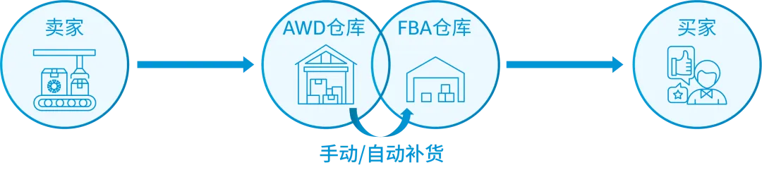 *注:当卖家通过亚马逊全球物流 (AGL) 将货件发送至 AWD 仓库后, 可以通过多种渠道分销库存,满足一个库存池管理全渠道供货。