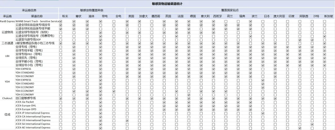 亚马逊一直在积极扩展中国出口的承运商选择列表,欢迎您也可以通过微信文章末的问卷调查告诉小编您现在使用的承运商名称。另外,目前已经对接的承运商可以支持敏感货物品运送的列表如下,请您参考: