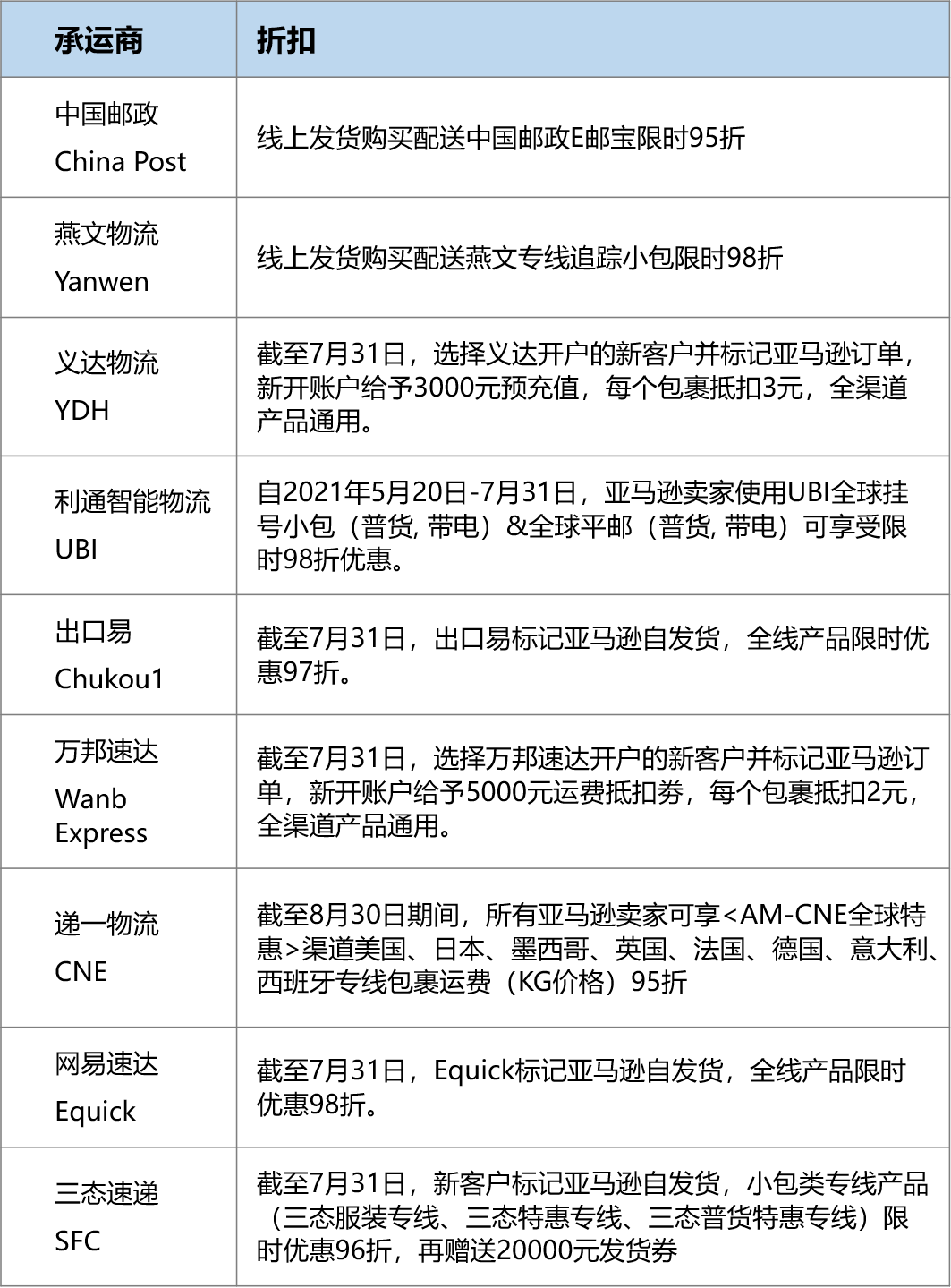① 所有卖家需使用与亚马逊对接了配送追踪的物流承运商。