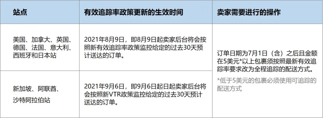 重要!卖家须为订单日期为7月1日(含)之后且五美金以上的包裹按照最新有效追踪率(VTR)要求改为全追踪配送方式。