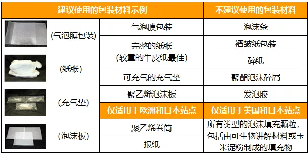 在包装单件商品时,请注意根据您的商品特性,按照以下要求包装产品: