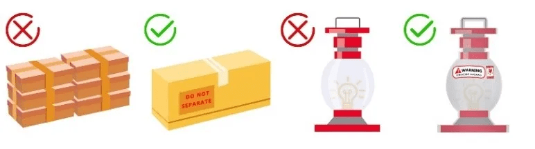 ▲包装的安全性:适用于塑料袋防窒息、锋利物品、易碎品、带电池物品、高货值物品等