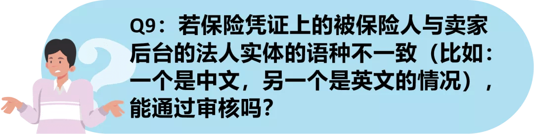 ▲保险凭证上的被保险人名称与卖家账户的法人实体名称不匹配