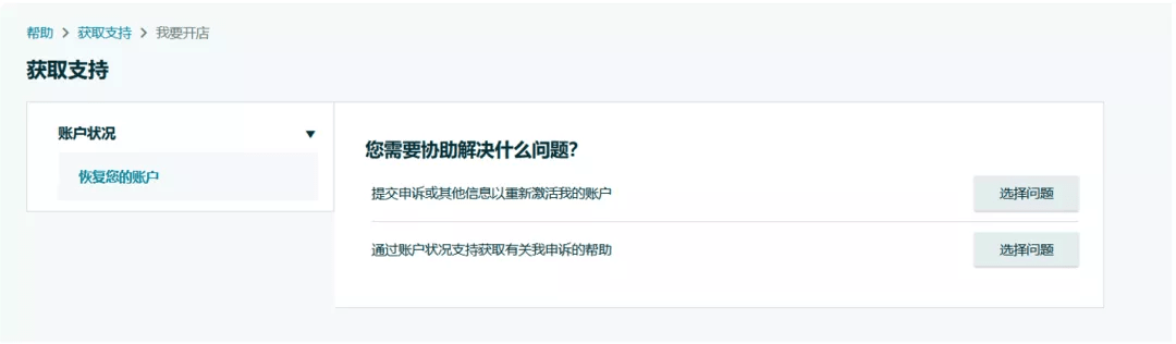 1. 您可以通过【卖家平台】-【帮助页面】-【恢复您的账户】联系账户状况支持团队获得申诉指导: