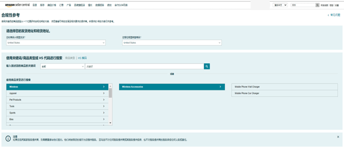 👉您也可通过以下路径访问“合规性参考“工具:登录亚马逊卖家平台,点击“绩效” > “账户状况” > “管理您的合规性” > “合规性参考”,通过“关键词/选择商品类型/HS代码搜索”三种方式查找商品。