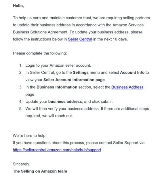 首先,卖家将会收到一封邮件(如下图),通知您开始验证地址信息/电话号码,且有3种可能发生的情况:①只需验证地址;②只需验证电话号码;③地址和电话号码均需验证。