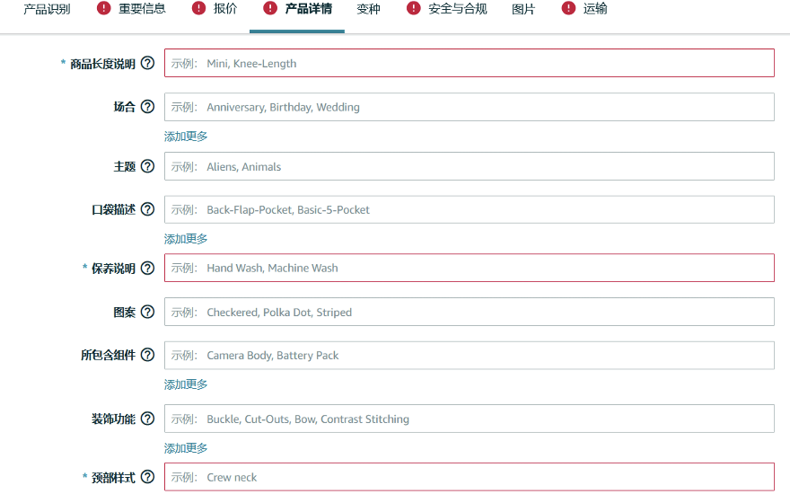 商品编辑单个上传页面标记为Required 属性组全部填写,标记为Recommend属性组尽可能完善填写