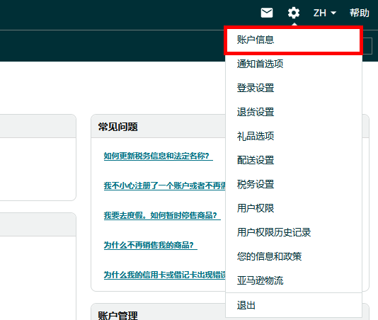 前往亚马逊卖家平台,登录您的卖家账户,点击“设置 > 账户信息”。