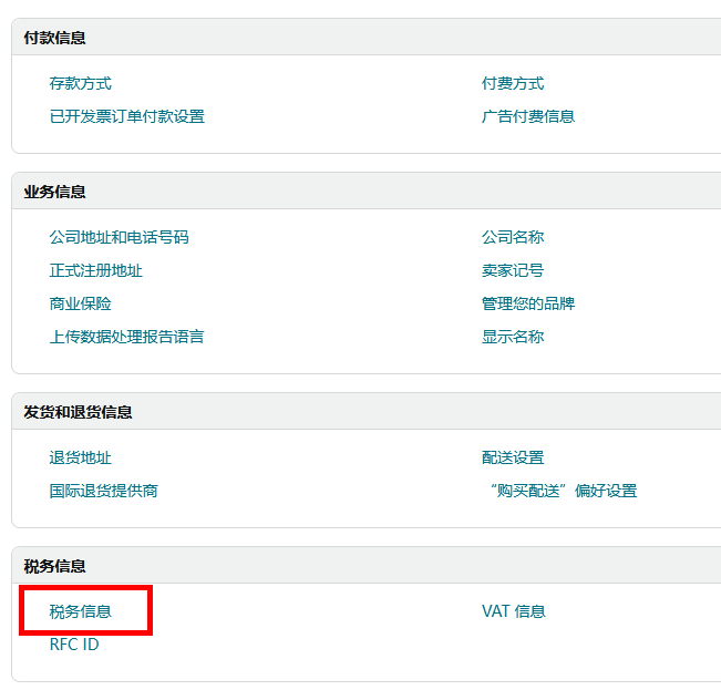 在页面底部,点击“税务信息”。