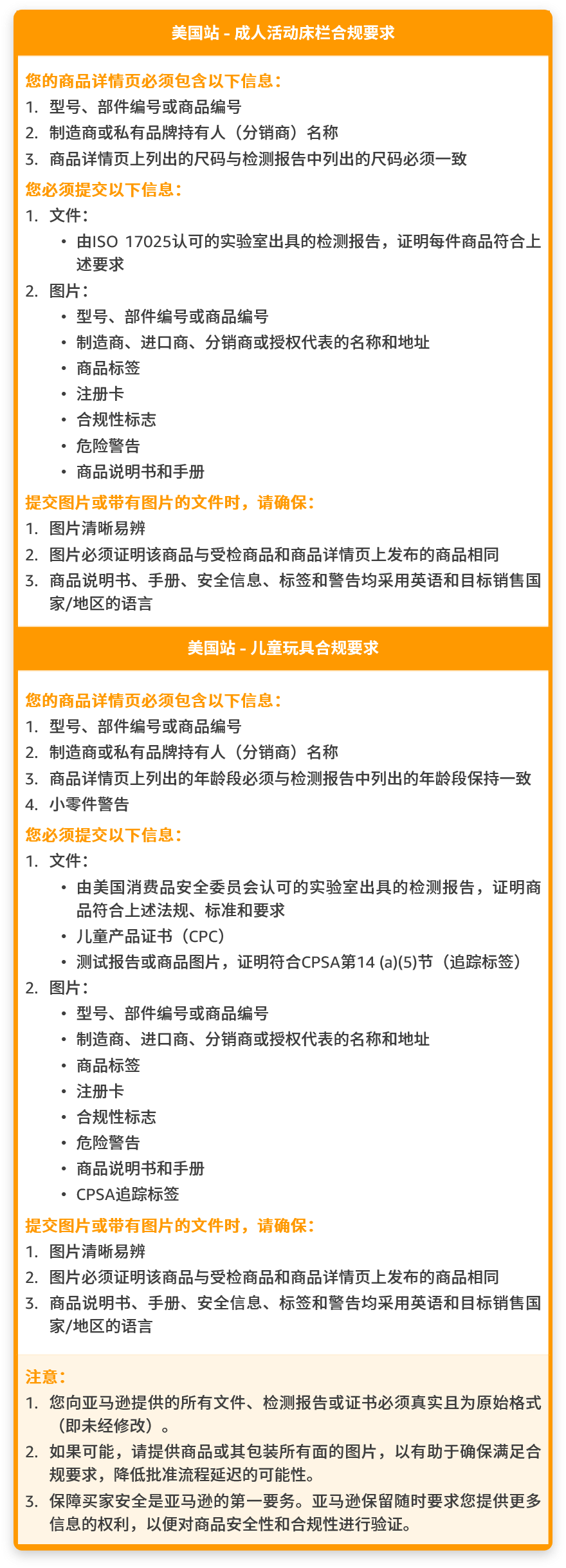 亚马逊要求所有儿童玩具均经过检测并符合下列所有法规、标准和要求: