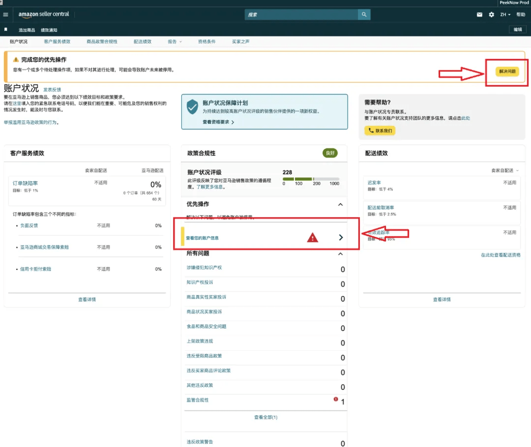 请注意:您可以随时访问帐户健康页面, 单击提示“完成您的优先操作”的横幅以检查您所提供信息的时效性和准确性,如有必要,请立即更新您的企业信息。