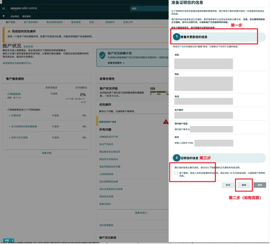 您需要确保这些信息是最新和准确的。亚马逊建议您及时检查并更新这些信息, 以便当系统要求您验证这些信息的准确性和时效性时, 您可以轻松完成, 从而避免账户受到影响。