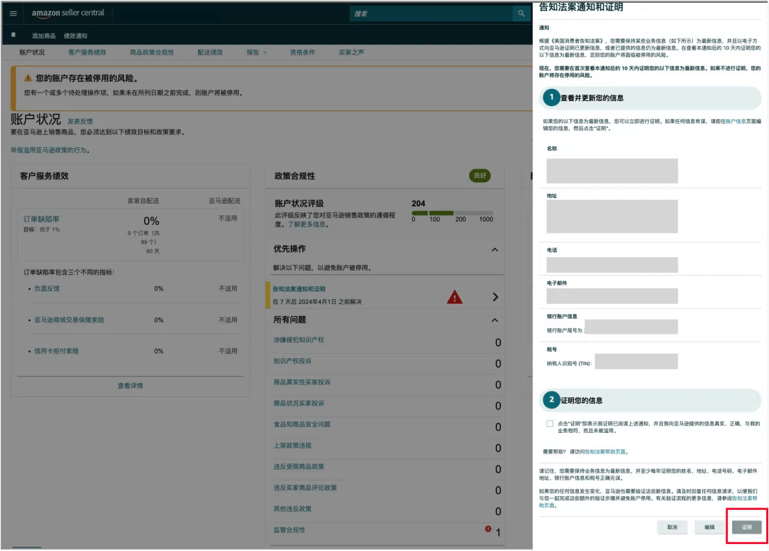《消费者告知法案》促使亚马逊要求所有高销量卖家*至少每年一次证明其信息仍然正确。