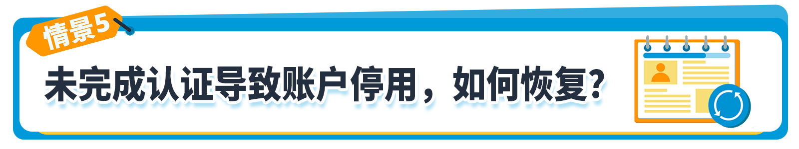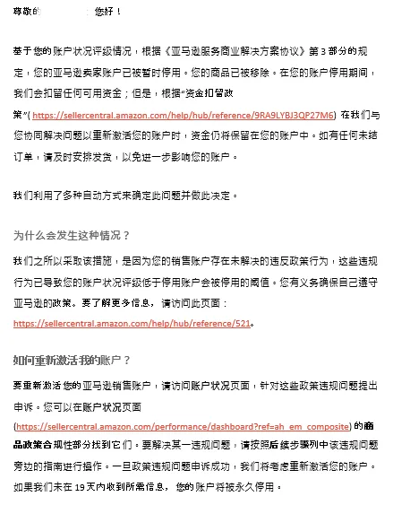 根据《消费者告知法案》,如果您没有在要求时间内完成所需的认证步骤,您的账户可能会被停用。如果您的账户因《消费者告知法案》要求而被停用,请按照亚马逊发送给您的账户停用电子邮件中所述重新激活步骤,或转至卖家平台“账户状况”页面顶部的“重新激活您的账户”,进行后续操作。