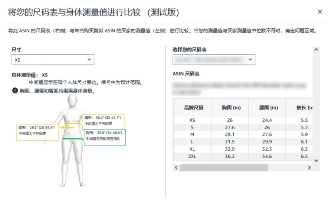 此外,FIT对部分卖家还开放了版型对照维度(测试版),卖家可通过对比商品尺码数据与购买同类商品的匿名顾客身材版型信息,帮助卖家更精准地确定商品的尺码设置。
