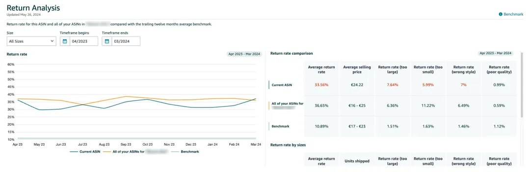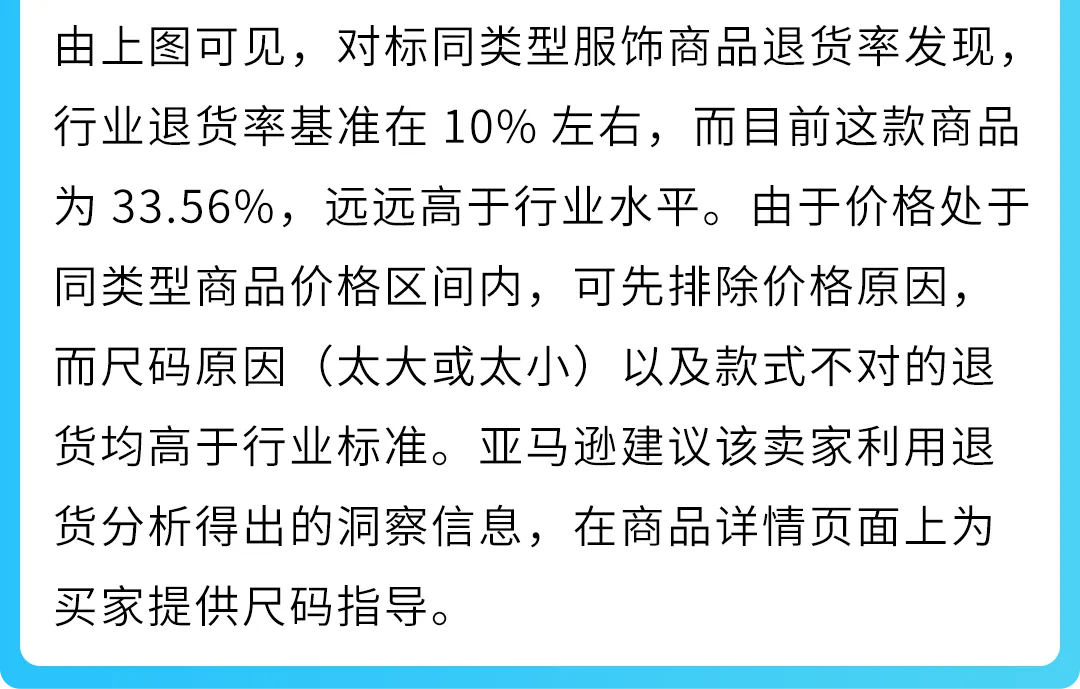 针对“退货率较高、绩效较差”的ASIN,您可以从退货分析、评论意见、尺码表分析三个维度来详细洞察该商品的退货原因。