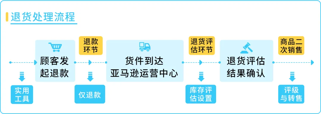 这一功能的推出,为卖家和买家都带来了全新的体验。当买家申请退货,并将卖家的亚马逊物流库存退回到亚马逊运营中心,亚马逊运营中心会评估其可售性。已设置该解决方案的FBA卖家,可以选择让买家无需退货,直接获得退款,从而节省卖家的退货处理和移除费用。