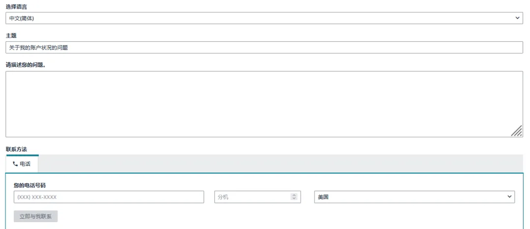 如果您错失账户状况专员的致电,或想主动取得状况专员的协助,请通过卖家平台>绩效>账户状况页面中的“现在与我联系”按钮,进入申请页面。选择所需的服务语言,并填写希望获得专员来电的电话号码,即可在中国标准时间的周一到周五上午7点到下午7点、周六和周日上午9点到下午5点获得来自账户状况支持团队的中文协助。