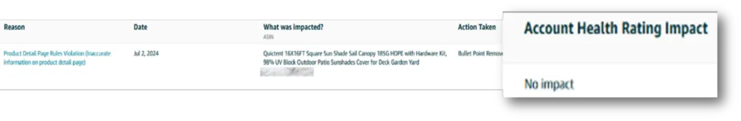 请注意!重复违规仅限于对账户状况评级有影响的账户健康政策。如果违规政策对账户状况评级的影响程度是“无影响”(如下图),或者还没有加入账户状况评级,则不会被记入重复违规。