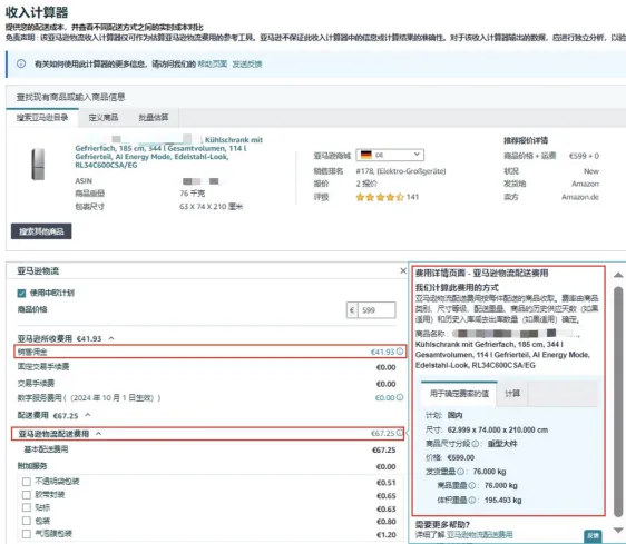 🔗 复制链接到浏览器查看更多亚马逊物流收入计算器介绍及使用方法:https://seller-central-eu-onebox.amazon.com/fba/profitabilitycalculator/index?lang=de_DE