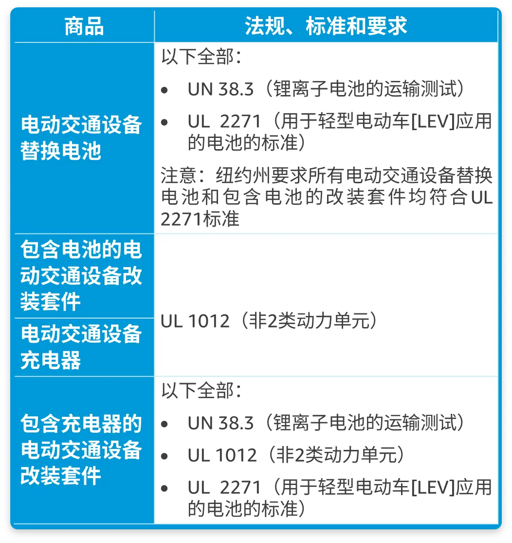 🔸 对于在纽约州销售的电动交通设备替换电池和包含电池的改装套件:
