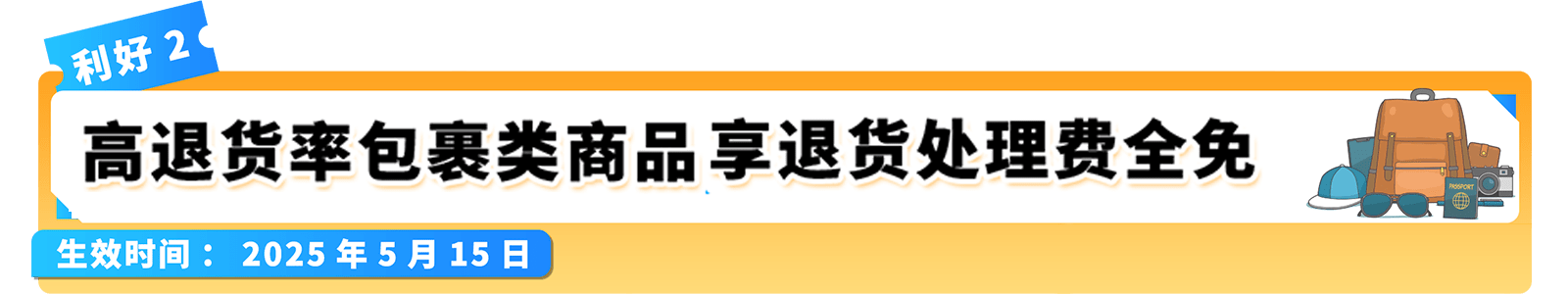 针对背包和手提包等退货率较高类商品,亚马逊将免除退货处理费;此外,2025年2月1日起售出的相关商品,若产生退货处理费,系统将自动免除或退还(无需卖家额外操作)。