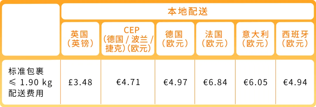 本次配送费用更新适用于英国、德国、法国、意大利和西班牙店铺的本地和亚马逊物流欧洲整合服务、欧洲配送网络、英国和欧盟之间的远程配送,以及商品原包装发货计划。
