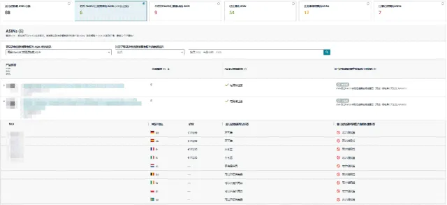 查看单个ASIN商品状态路径:德/法/意/西卖家后台->库存->亚马逊物流欧洲整合服务库存->符合PanEU注册资格的ASIN(从未注册过的)