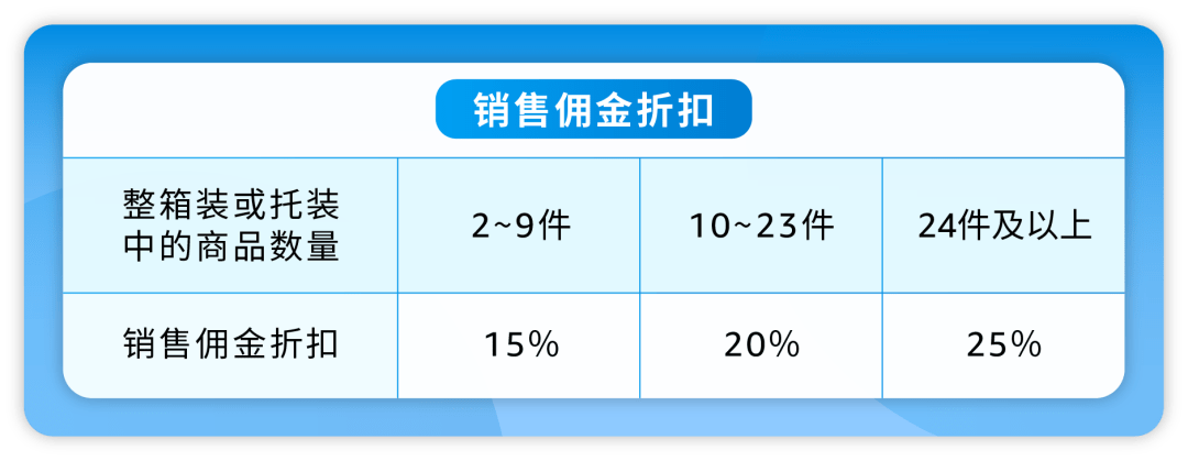 当您成功创建多层级包装展示,且箱装、托装产品符合此项目销售佣金折扣要求,销售佣金折扣将会立即生效!