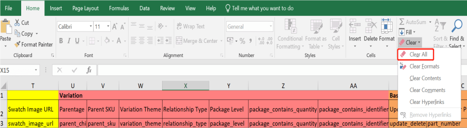 ● 当您填写模板时:如果商品未在亚马逊商城发布,建议您先创建商品,再填写此模板以避免不必要问题;如果商品已在亚马逊商城发布,请参考下图进行填写(图中字段为必填字段)
