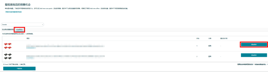 这些推荐参考了您注册品牌中已有大包装、但尚未提供报价的ASIN。亚马逊为您提供推荐商品和价格,以便您轻松为此现有大包装ASIN添加报价。