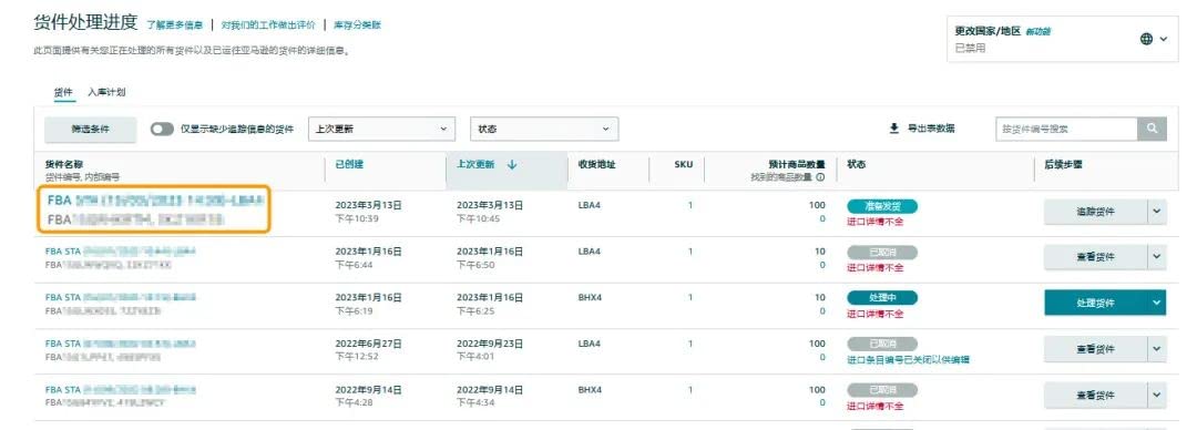 第2步:在货件处理进度中,找到要取消的订单,点击订单号,进入订单详情页。