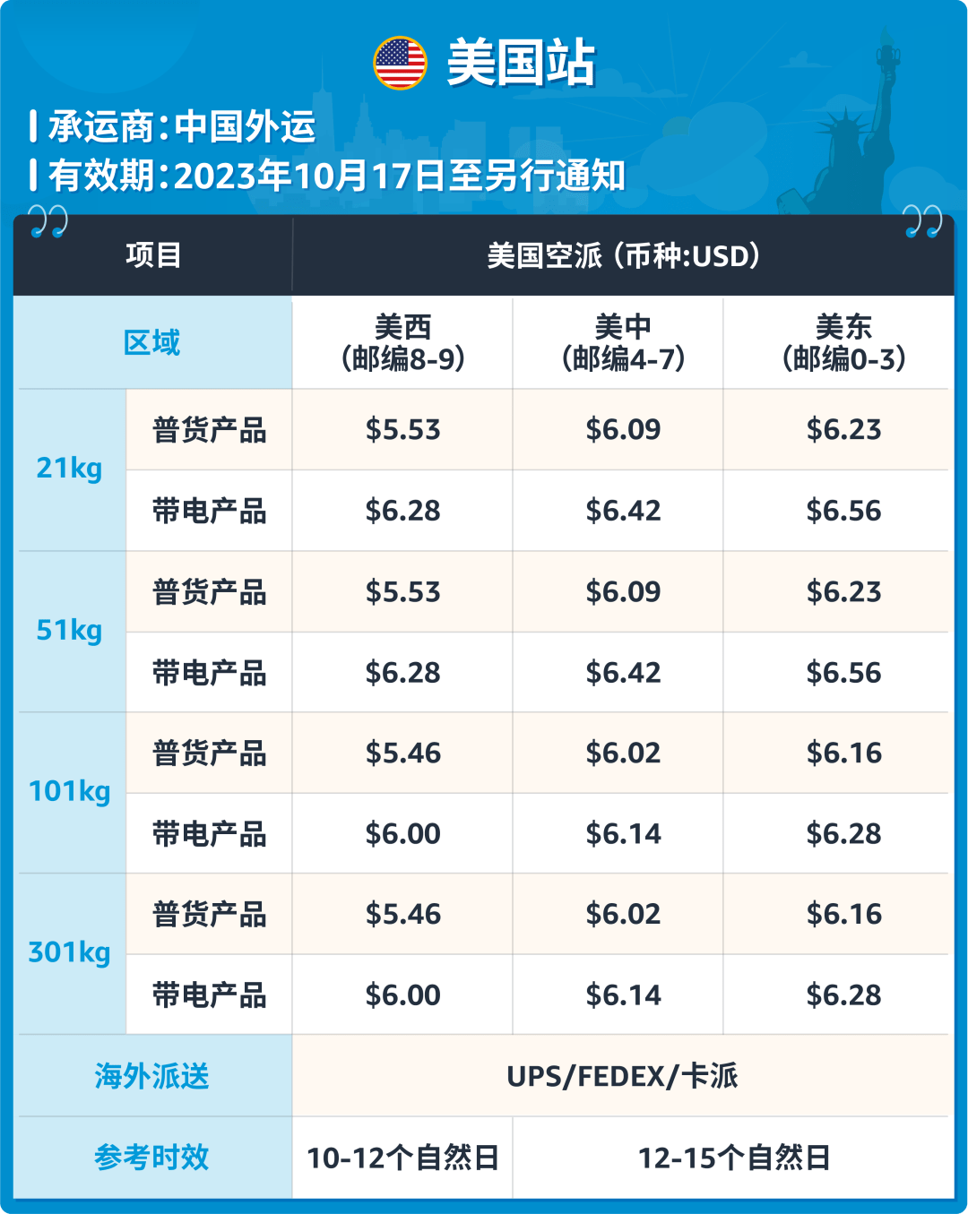 * 20kg以下空运费请在卖家平台建单后查询或者在亚马逊官方讨论群咨询。