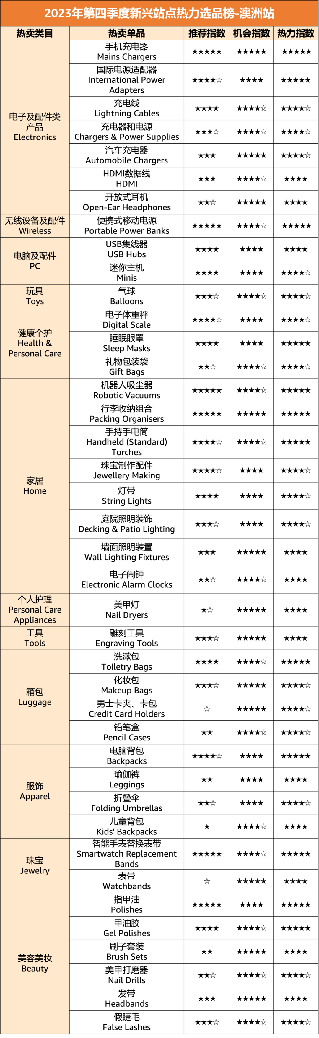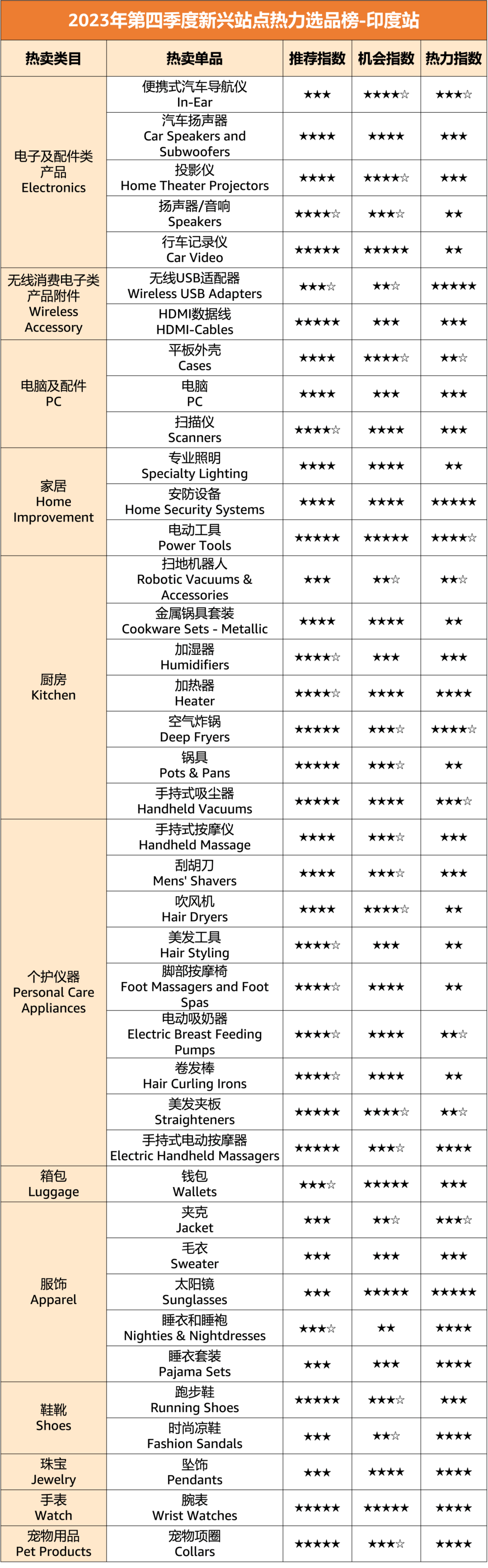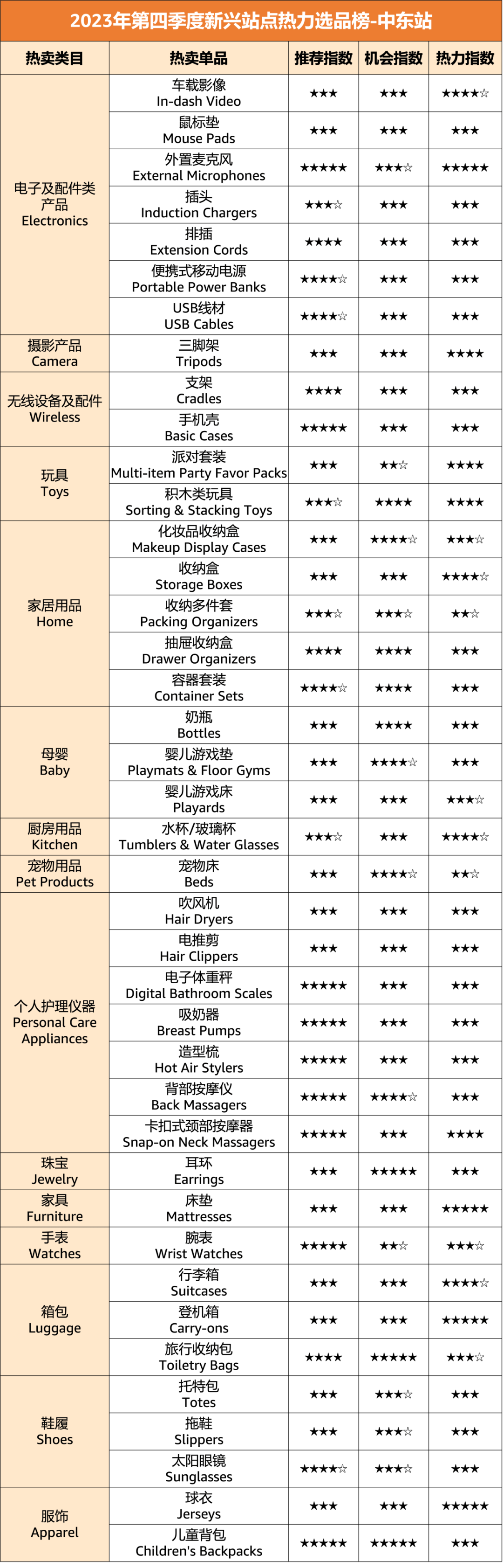 亚马逊新兴站点Q4爆款榜单!20大品类,150+明星单品